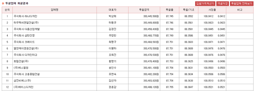 3. 상세페이지에서는 최대 50개 업체까지 노출이 되며, 보다 상세한 정보는 투찰업체 전체보기를 클릭합니다.