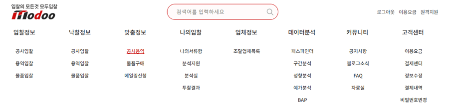 다음 메뉴 중에서 공사용역 또는 물품구매를 클릭합니다.