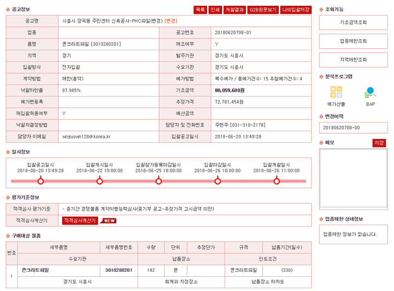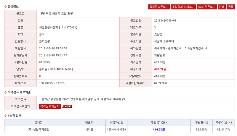 물품적격심사 계산기는 공고상세정보를 보는 곳에서 확인할 수 있습니다.
