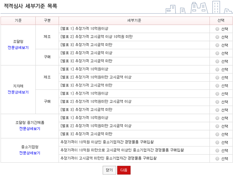 4. 적격심사 세부기준 선택이 완료되었으면, 다음버튼을 클릭합니다.