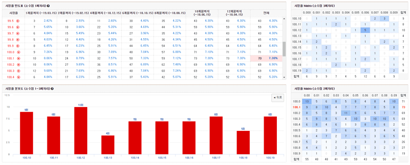 해당 구간을 선택하면 오른쪽 사정율 Matrix로 상세한 사정율을 소수점 3째자리까지 보여줍니다.